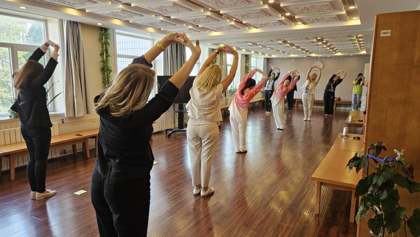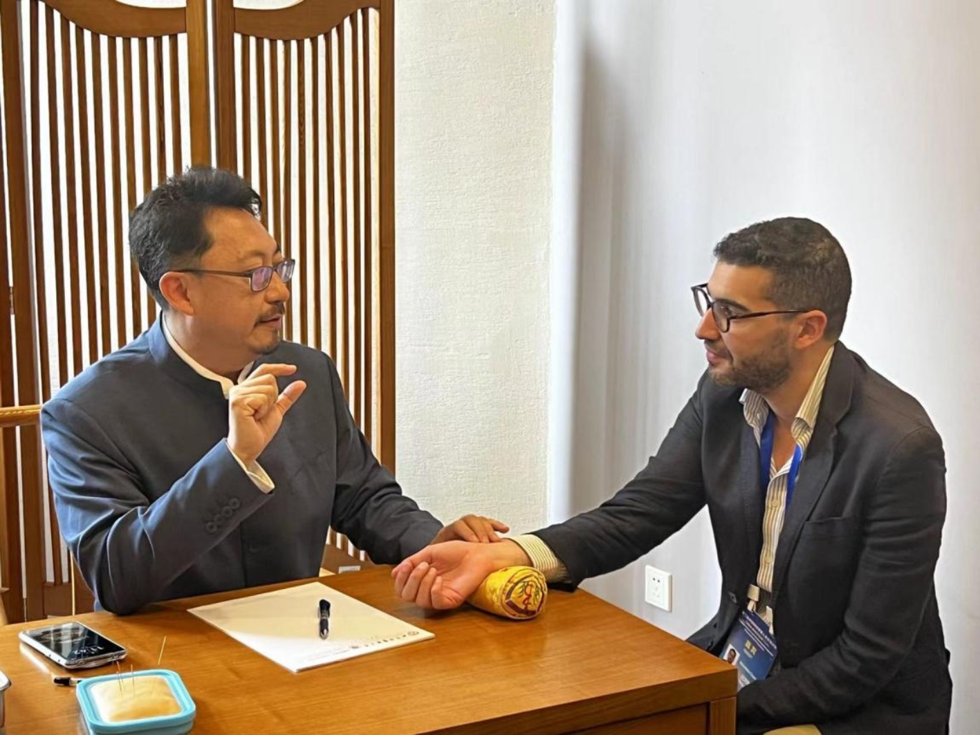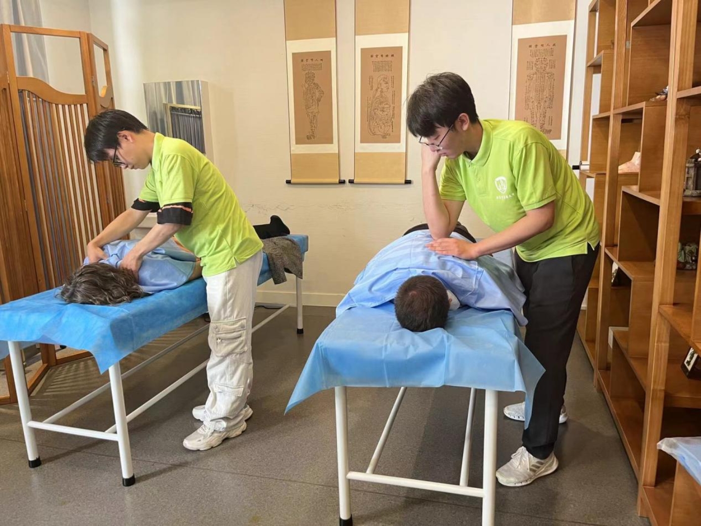 随后,来宾们体验了脉诊、推拿、耳穴、艾灸、拔罐等多种中医疗法,并在学校体育部胡雁宾副教授的带领下练习导引功法,深度感受中医药的独特魅力。